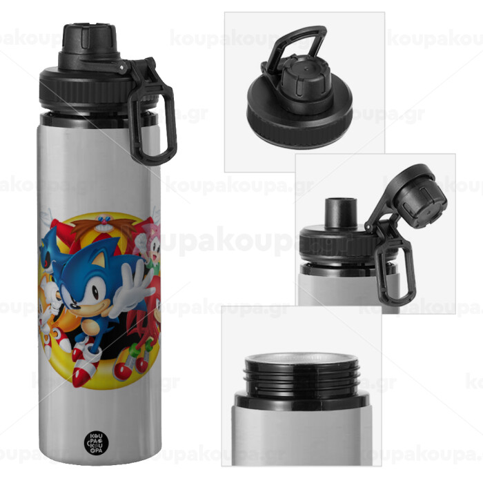 Sonic and friends, Metallic water bottle with safety cap, 850ml aluminum