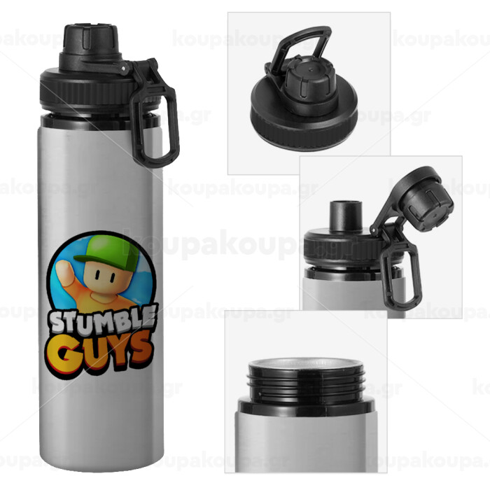 Stumble Guys, Metallic water bottle with safety cap, 850ml aluminum