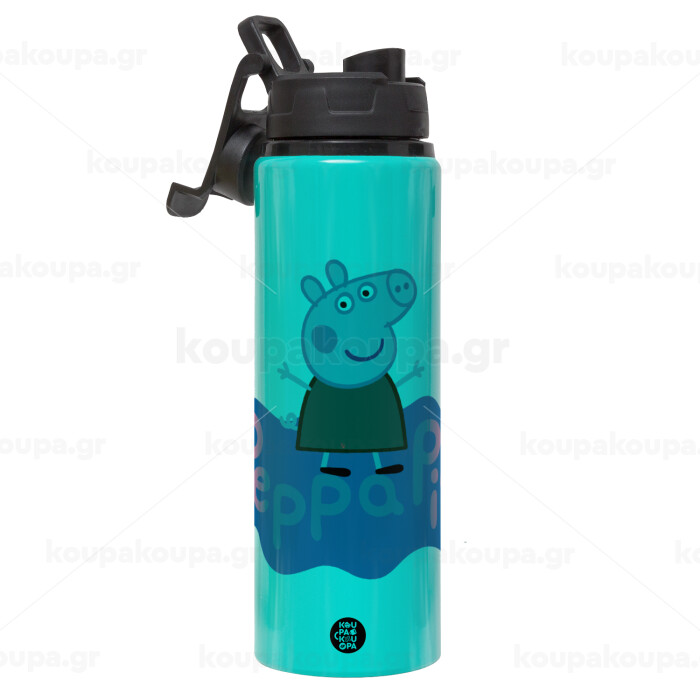 Πέππα το γουρουνάκι μπλε με όνομα, Metallic water bottle with safety lid, 850ml aluminum
