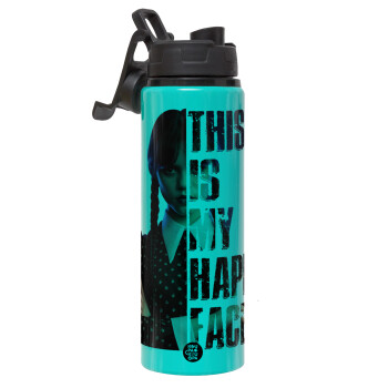 Wednesday, This is my happy face, Metallic water bottle with safety lid, 850ml aluminum