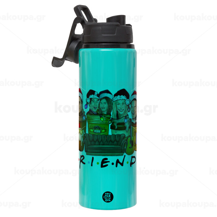 FRIENDS xmas, Metallic water bottle with safety lid, 850ml aluminum