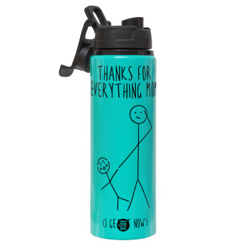 Thanks for everything mom, Metallic water bottle with safety lid, 850ml aluminum