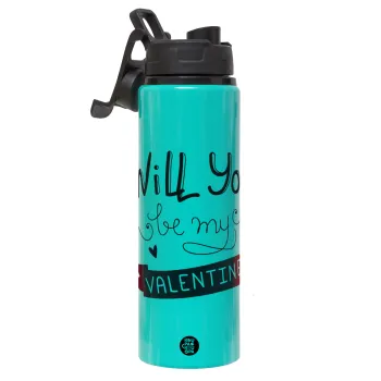 Will you be my Valentine???, Metallic water bottle with safety lid, 850ml aluminum