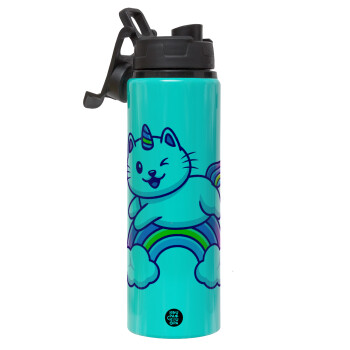Cute cat unicorn, Metallic water bottle with safety lid, 850ml aluminum