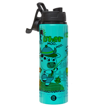 Kids Fisherman, Metallic water bottle with safety lid, 850ml aluminum