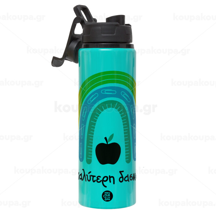 Η καλύτερη δασκάλα, Metallic water bottle with safety lid, 850ml aluminum