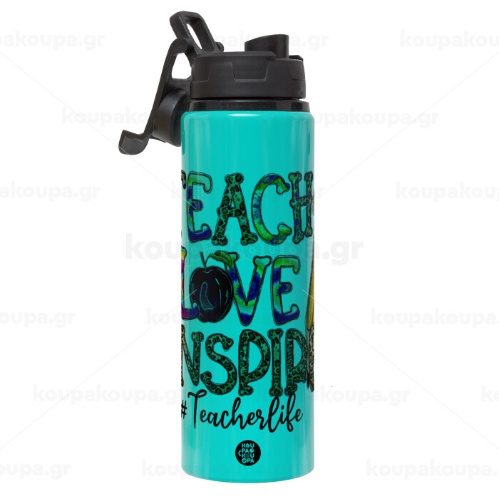 Teach, Love, Inspire, Metallic water bottle with safety lid, 850ml aluminum