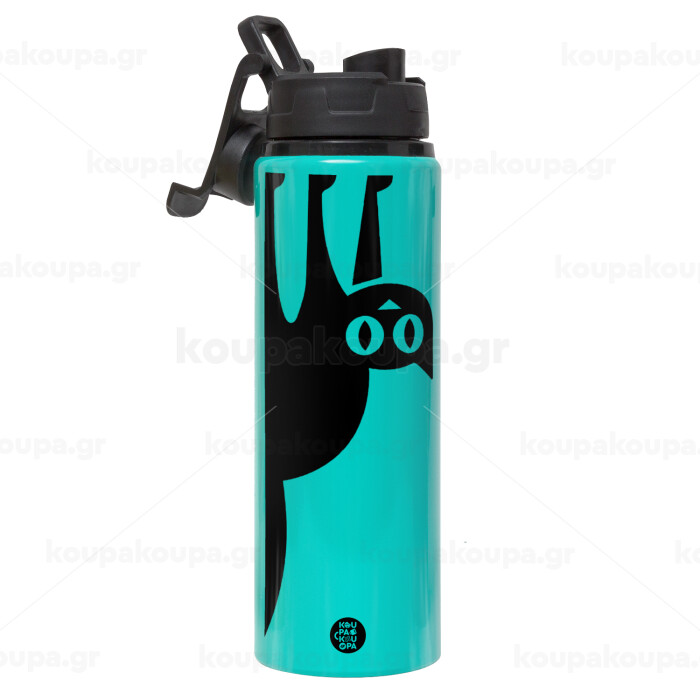 Cat upside down, Metallic water bottle with safety lid, 850ml aluminum