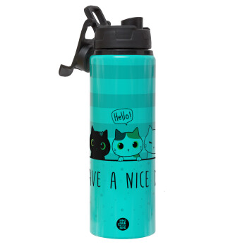 Have a nice day cats, Metallic water bottle with safety lid, 850ml aluminum