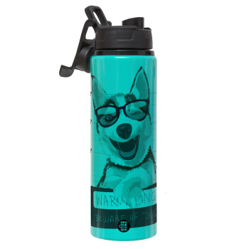 Warning, beware of Dog, Metallic water bottle with safety lid, 850ml aluminum