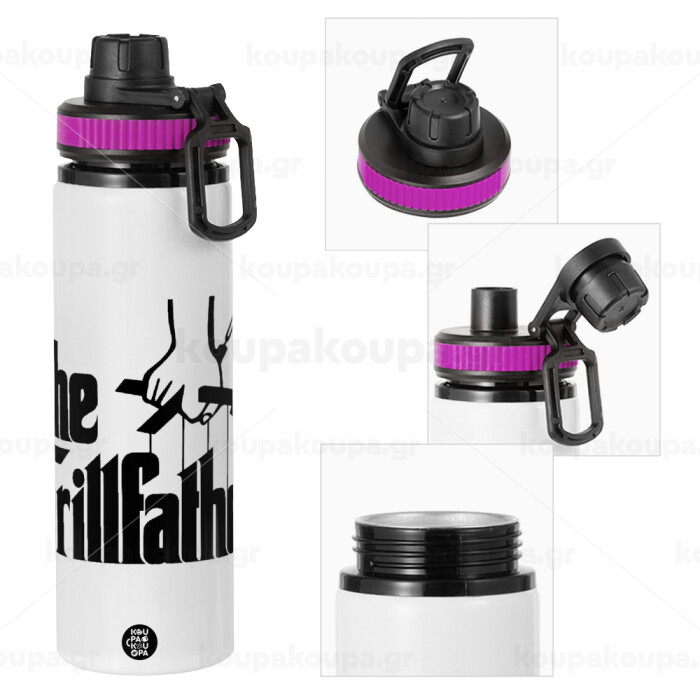 The Grill Father, Metallic water bottle with safety lid, 850ml aluminum