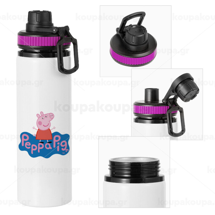 Πέππα το γουρουνάκι μπλε με όνομα, Metallic water bottle with safety lid, 850ml aluminum