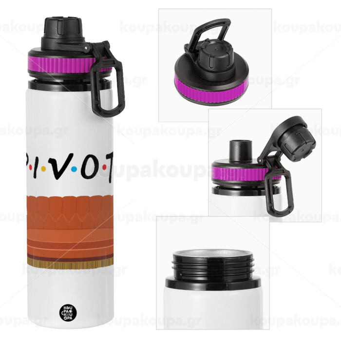 Friends Pivot, Metallic water bottle with safety lid, 850ml aluminum
