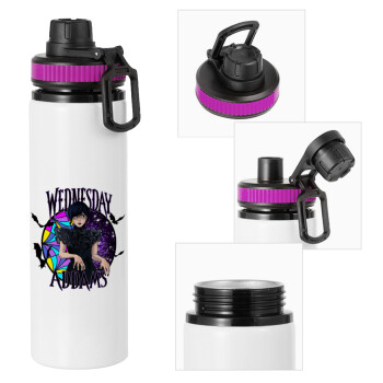 Wednesday Jenna Ortega, Metallic water bottle with safety lid, 850ml aluminum