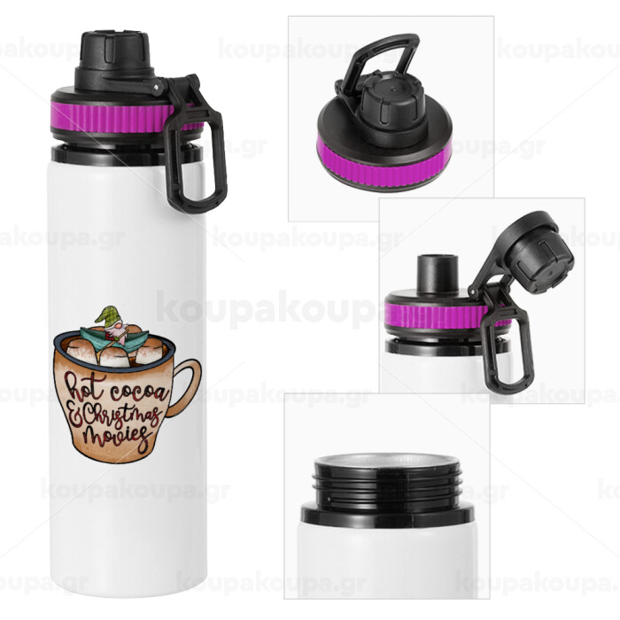 Hot Cocoa And Christmas Movies, Metallic water bottle with safety lid, 850ml aluminum