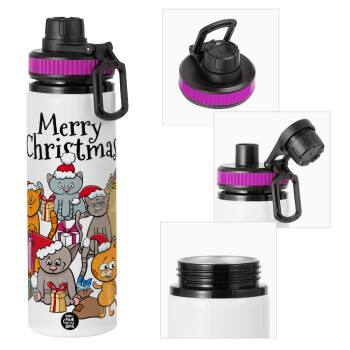 Merry Christmas Cats, Metallic water bottle with safety lid, 850ml aluminum