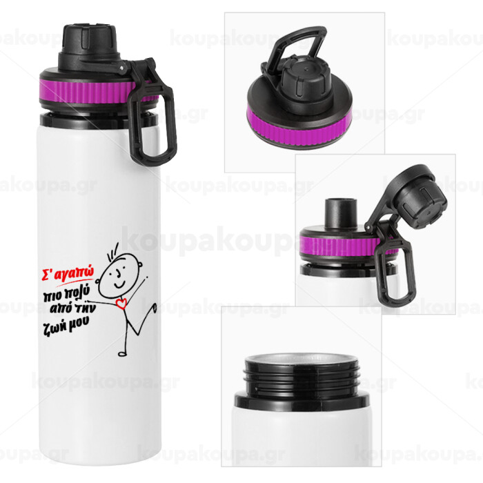 Σ'αγαπώ πιο πολύ από την ζωή μου!!!, Metallic water bottle with safety lid, 850ml aluminum