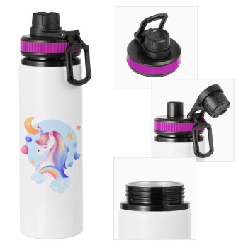 Cute unicorn, Metallic water bottle with safety lid, 850ml aluminum