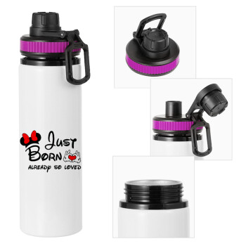 Just born already so loved, Metallic water bottle with safety lid, 850ml aluminum