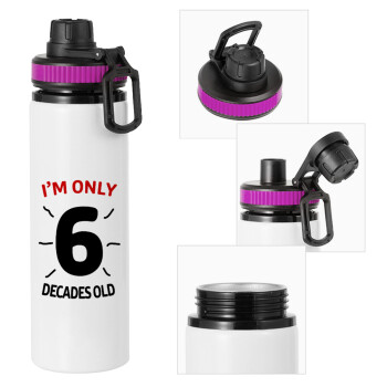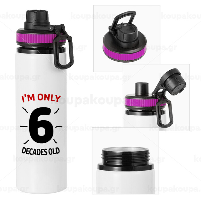 I'm only NUMBER decades OLD, Metallic water bottle with safety lid, 850ml aluminum