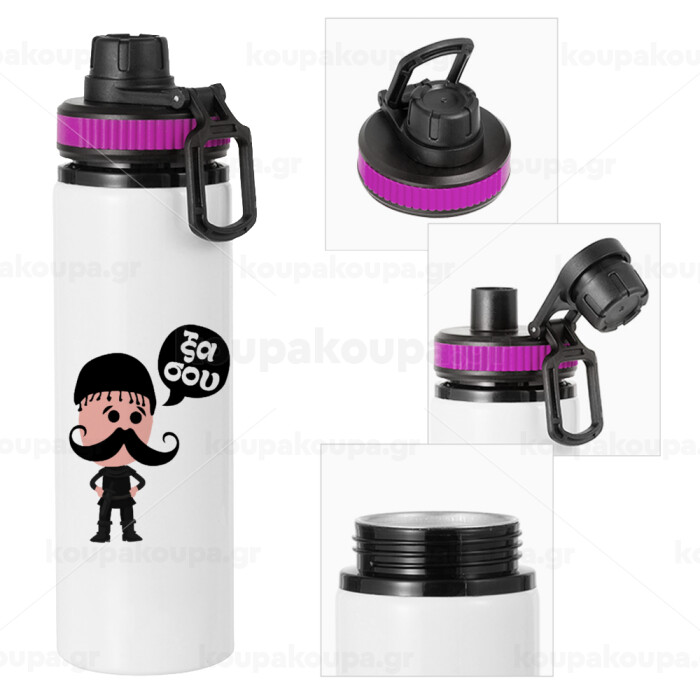 Κρητικός "Ξα σου", Metallic water bottle with safety lid, 850ml aluminum