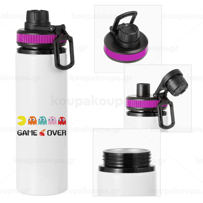 GAME OVER pac-man, Metallic water bottle with safety lid, 850ml aluminum