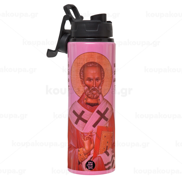Saint Nicholas orthodox , Metallic water bottle with safety lid, 850ml aluminum