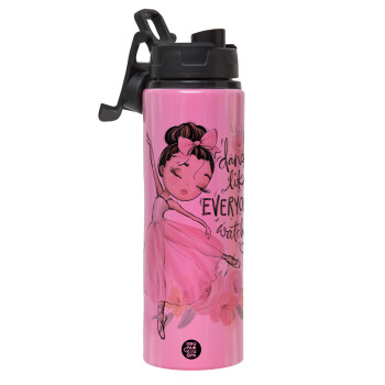 Dance Like everyone's watching, Metallic water bottle with safety lid, 850ml aluminum