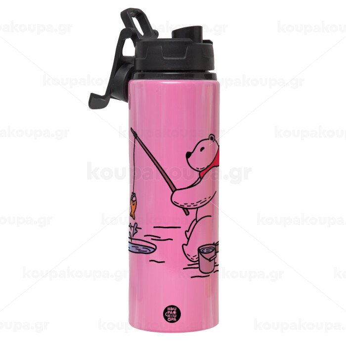 Bear fishing, Metallic water bottle with safety lid, 850ml aluminum