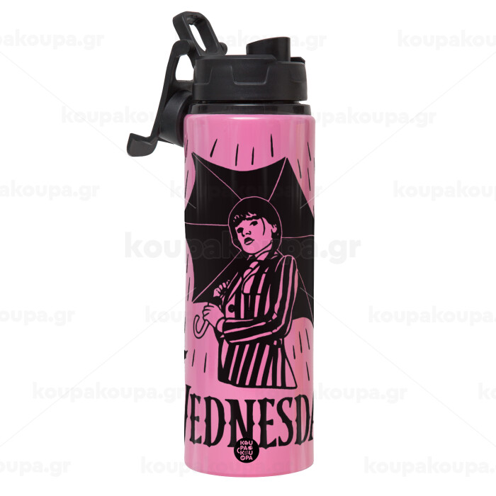 Wednesday Addams, Metallic water bottle with safety lid, 850ml aluminum