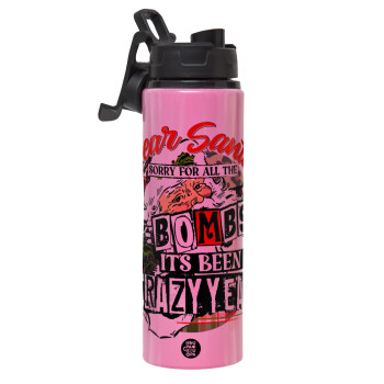 Dear Santa, sorry for all the F-bombs, Metallic water bottle with safety lid, 850ml aluminum