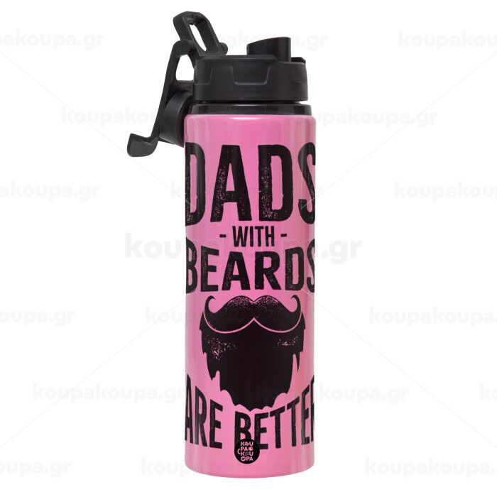 Dad's with beards are better, Metallic water bottle with safety lid, 850ml aluminum