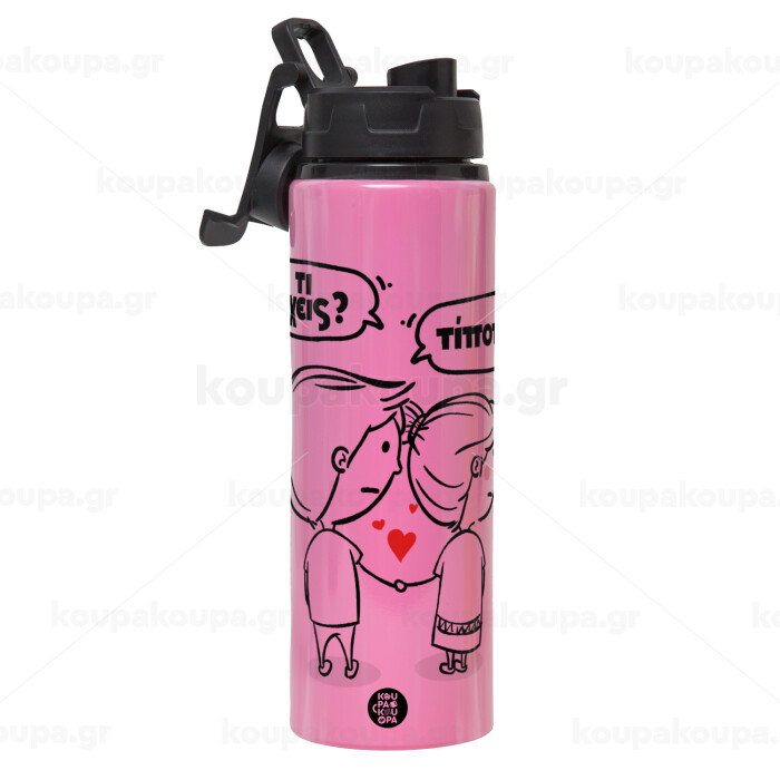 Τι έχεις? Τίποτα!, Metallic water bottle with safety lid, 850ml aluminum