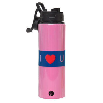 I Love You text message, Metallic water bottle with safety lid, 850ml aluminum