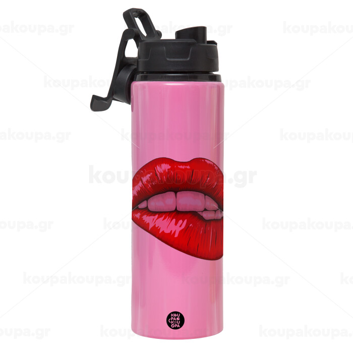 Lips, Metallic water bottle with safety lid, 850ml aluminum