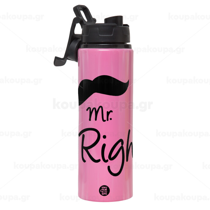 Mr right Mustache, Metallic water bottle with safety lid, 850ml aluminum