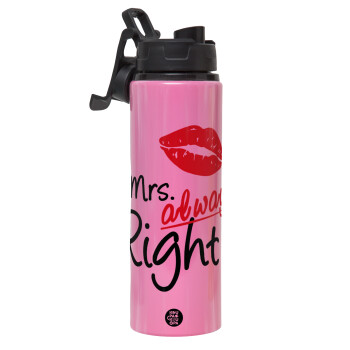 Mrs always right kiss, Metallic water bottle with safety lid, 850ml aluminum