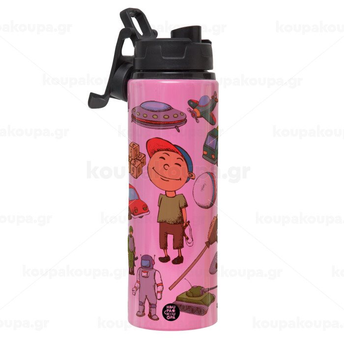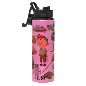 Toys Boy, Metallic water bottle with safety lid, 850ml aluminum