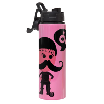 Κρητικός "Οι", Metallic water bottle with safety lid, 850ml aluminum