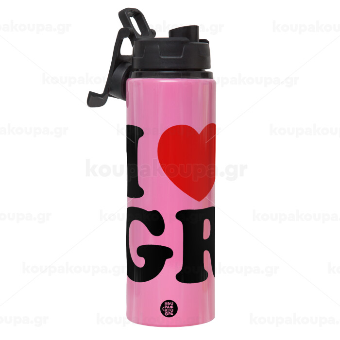 I Love GR, Metallic water bottle with safety lid, 850ml aluminum