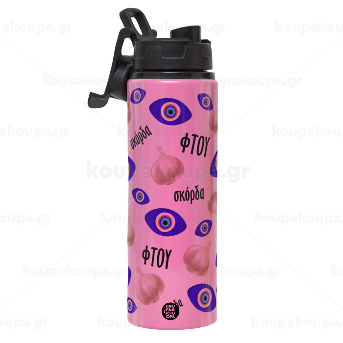 Φτου, φτου, σκόρδα!!!, Metallic water bottle with safety lid, 850ml aluminum