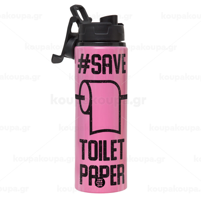 Save toilet Paper, Metallic water bottle with safety lid, 850ml aluminum