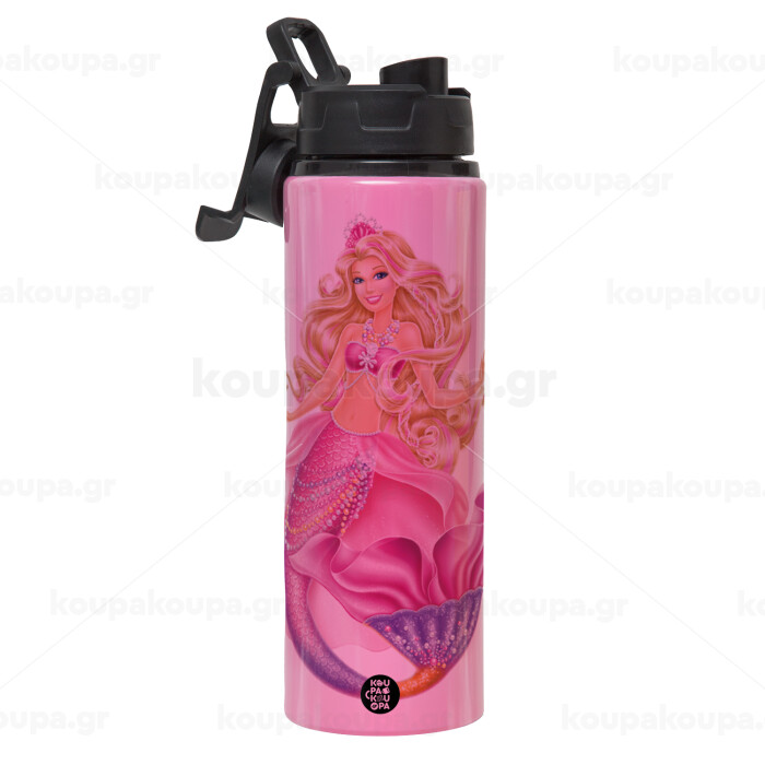 Barbie mermaid , Metallic water bottle with safety lid, 850ml aluminum