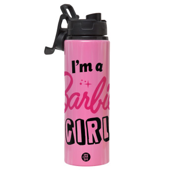 I'm Barbie girl, Metallic water bottle with safety lid, 850ml aluminum