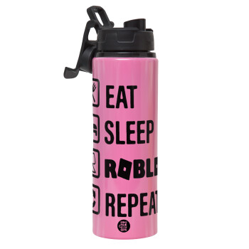 Eat, Sleep, Roblox, Repeat, Metallic water bottle with safety lid, 850ml aluminum