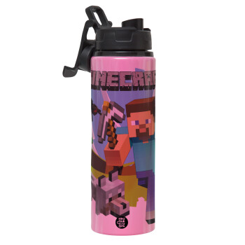 Minecraft Alex, Metallic water bottle with safety lid, 850ml aluminum