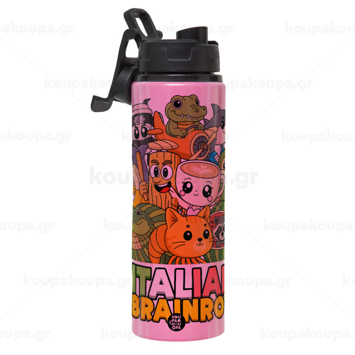 Italian Brainrot friends, Metallic water bottle with safety lid, 850ml aluminum