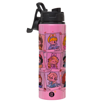 Labubu characters, Metallic water bottle with safety lid, 850ml aluminum