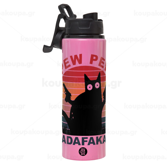 PEW PEW madafakas, Metallic water bottle with safety lid, 850ml aluminum