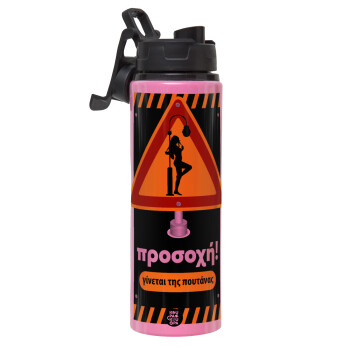 Προσοχή Γίνεται της πουτ.νας, Metallic water bottle with safety lid, 850ml aluminum
